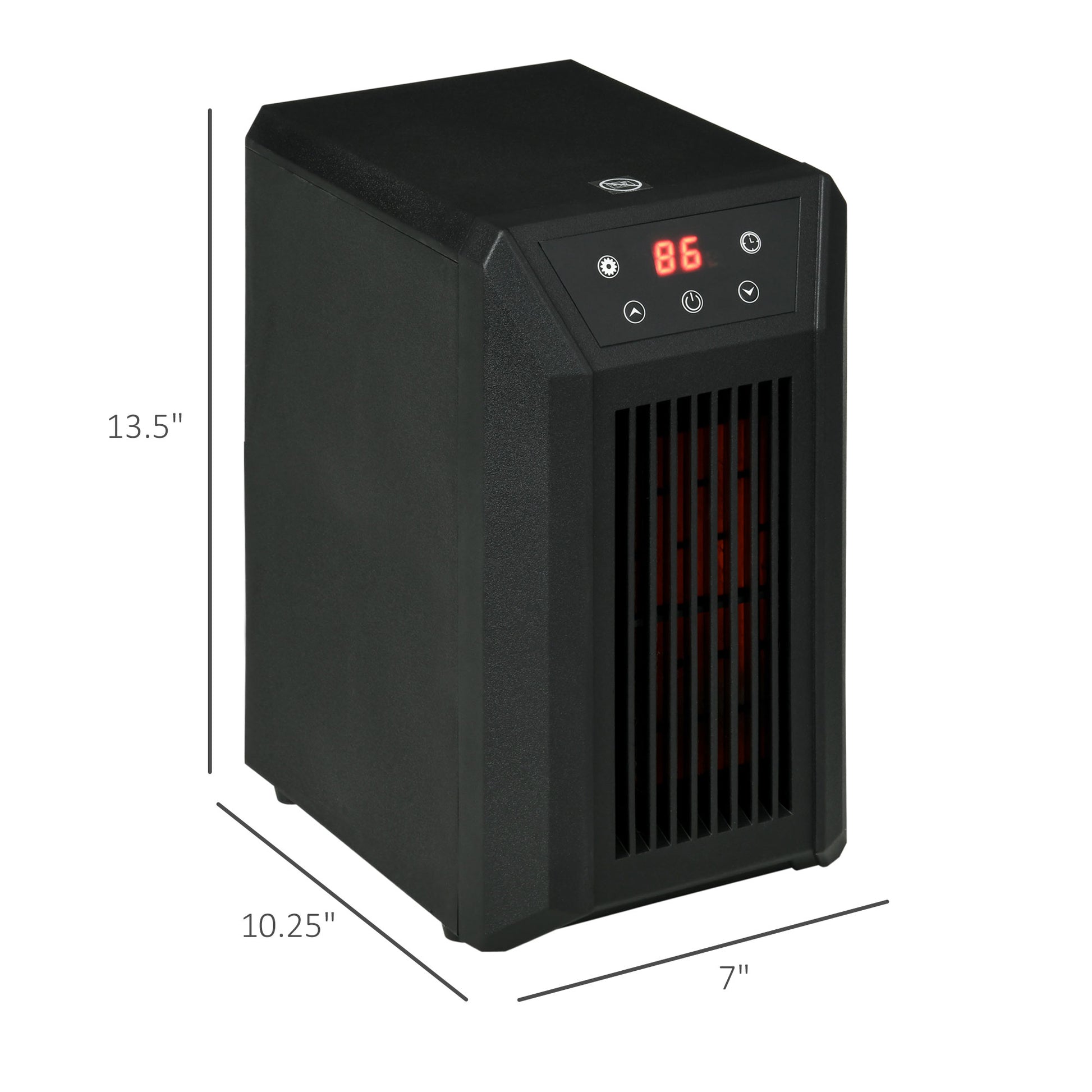 There's not much to say about our HOMCOM portable heater other than they do their job, focusing on a no-nonsense esthetic, easy portability, and superior function. Be it at work, in the bedroom, living room, basement, garage, RV, or otherwise cold space; things are about to get and stay warm safely. Regarding a personal heater, HOMCOM is the obvious choice for your space's warmth. Features: - This infrared room heater provides an intimate and warm ambiance with a limited footprint - Three heating modes(High/Low/ECO), choose which you prefer - Adjustable temperature range from 59 to 86 degrees with 12h timer - Covers between 161-215 square feet of space - Auto-shut off for overheat protection, unlikely to catch fire or cause serious household damage - When tipped, power cuts. Upon uprighting, the heater resets - 2 control modes: remote control or top control panel, LED display is easy to read the temp, mode, and timer - Floor standing or table-top use Specification: - Color: Black - Material: Plastic - Overall Dimensions: 7"W x 10.25"D x 13.5"H - Coverage: 161-215 square feet - Temperature Range: 59-86℉ - Voltage: AC 120V/60Hz - Power: 1500W (5115BTU) /12.5A - Cable Length: 6ft - Remote Distance: 16ft - Item Label: 820-359V80BK Package Includes: - 1 x Space Heater - 1 x Remote - 1 x Manual Say goodbye to sparks and kindling, our HOMCOM portable fireplace make a statement in your space without maintenance or hazards. We provide the warmth and glow of a real hearth, making our fireplace a safe focal point. Be it a family game night or film date, things are about to get real cozy. Turn the heat on during the colder months, and keep the heat off in warmer ones; the choice is yours. When it comes to a space heater fireplace, HOMCOM is the obvious choice for your family's warmth. Features: - Freestanding fireplace provides an intimate and warm ambience with a limited footprint - Three sides glasses give 180° of observation for you to enjoy the brilliant esthetic from any angle - The 3D flame is so realistic that you might feel worried about burning your hand. Don't worry, tempered glass offers effective heat insulation - Two adjustable heating modes(1000W/1500W), allowing you to choose a powerful heat or a low energy bill - Adjustable temperature range from 50℉ to 95℉ to warm your room - Covers 161-269 sq.ft of space - Auto-shut off for overheat protection, unlikely to catch fire or cause serious household damage - Designed for year-round use, it can be used with or without heat - Assembly required Specification: - Color: Black - Materials: Steel, Tempered Glass, ABS - Overall Dimension: 24" W x 14" D x 24" H - Window Size: 16.25" W x 11" H (front), 7" W x 11" H (side) - Heating Coverage: 161-269 sq.ft - Input Voltage: AC 120V/60Hz - Power: 1000W/1500W - Heat Output: 5115BTU - Power Cord: 5.9ft - Working Noise: <55dB - Certification: UL/ETL/CSA - Item Label: 820-389V80BK Package Includes: - 1 x Electric Fireplace - 1 x Manual.